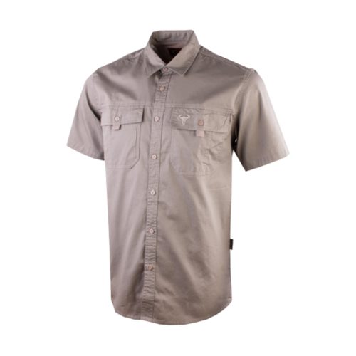 This mens shirt is made of a 100% Cotton material and has two pockets on both sides of the chest. It is a simple button-up shirt with a collar. The pockets have button flap closures and a few detail trimmings. It has a curved bottom, it is not straight so it is ideal for tucking in and covering a part of your backside. The shirt has a Wildebees logo design embroidery label on the pocket and some branding tags on the side. The back of the shirt is vented.